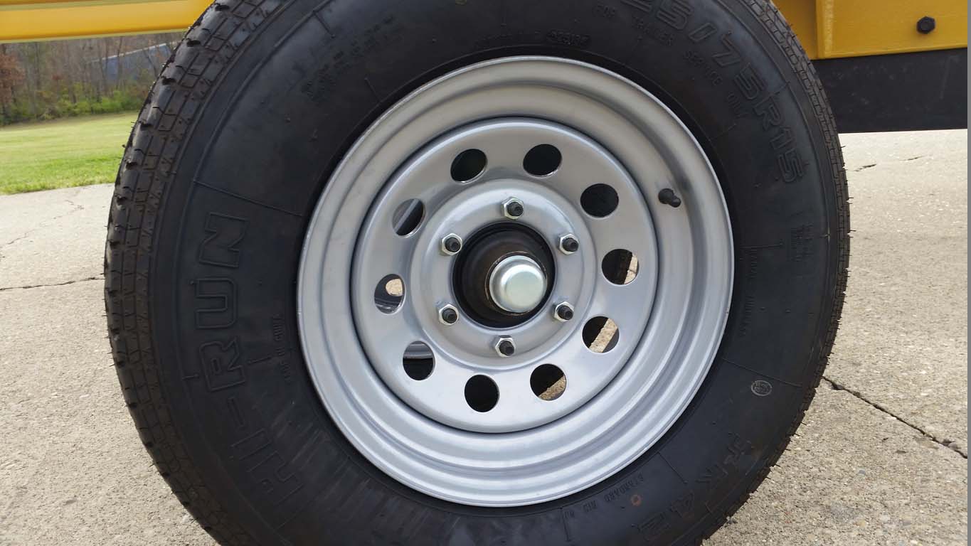 Heavy Duty Dual 15" Powder Coated Wheels, 8ply Tires, and 6 Bolt High Speed Greasable Hubs |